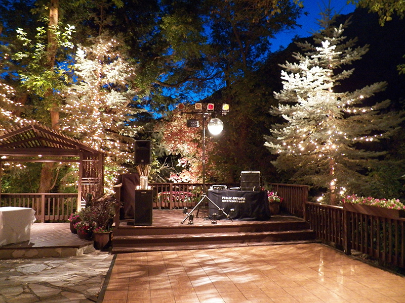 Lit up patio with dance floor, reception sound system - Millcreek Inn, Utah